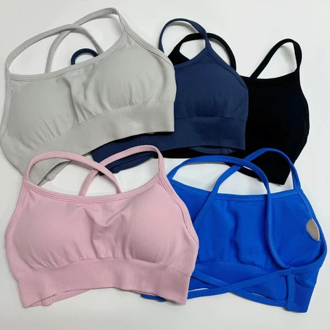 Reggiseno sportivo senza schienale morbido e burroso Top da allenamento con reggiseni imbottiti rimovibili per allenamento Yoga Strappy che escono al Top